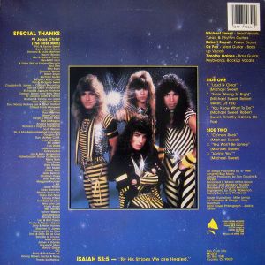 Along with Soldiers Under Command, I still think this is one of the coolest album covers ever. I loved it when I first saw it in 1986 and I know I would have loved it in 1984. I love the back artwork as well. I didn’t get that in my cassette version. Stryper look just as cool as Motley Crue or Ratt looked at the time. I also love the shout out to #1 Jesus Christ (The Boss Man). A bit of trivia for you; the first pressing had a printing error that cut some of the image off at the bottom. That was fixed when they repressed it. There is also a yellow vinyl variant that I really need to get at some point. There are also two variations of the cassette card. I had the one with the yellow at the bottom.